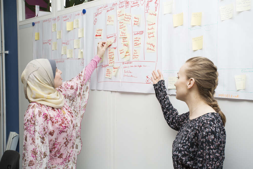 Hinter jeder einzelnen Adresse steht ein anderes Konzept das geflüchteten Frauen hilft: mal geht es um eine Rechtsberatung, mal Sprachförderung oder um psychosoziale Beratung. Jetzt warten sie auf all die ausgefüllten Fragebögen, die die Grundlage für die erste Analysestufe bilden.