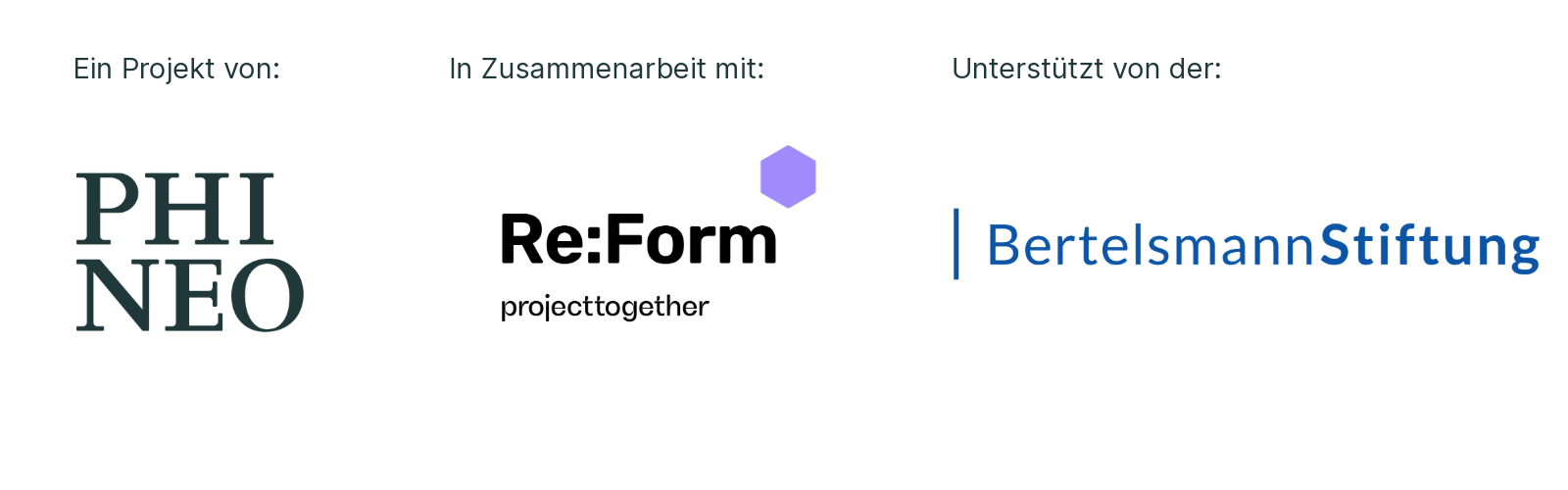 Hinter dem Projekt von PHINEO Public versammelt sich ein breites Netzwerk: Impact Kommunen wird von der Bertelsmann Stiftung unterstützt und in Zusammenarbeit mit ProjectTogether umgesetzt. Es findet unter dem Dach der Plattform #Staatsmodernisierung an der Hertie School statt. Mehr Informationen zu Partnern und Mitwirkenden finden Sie weiter unten.